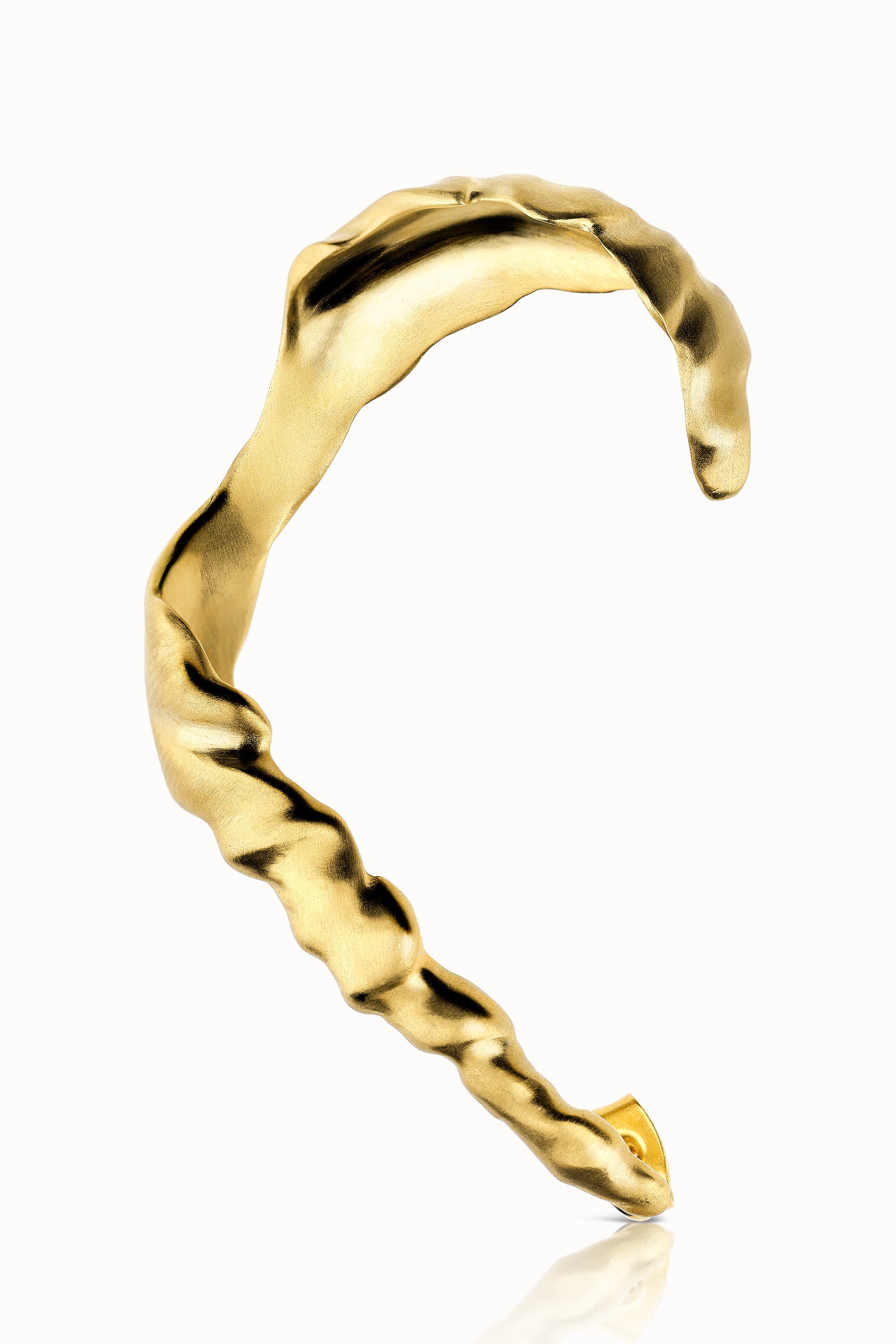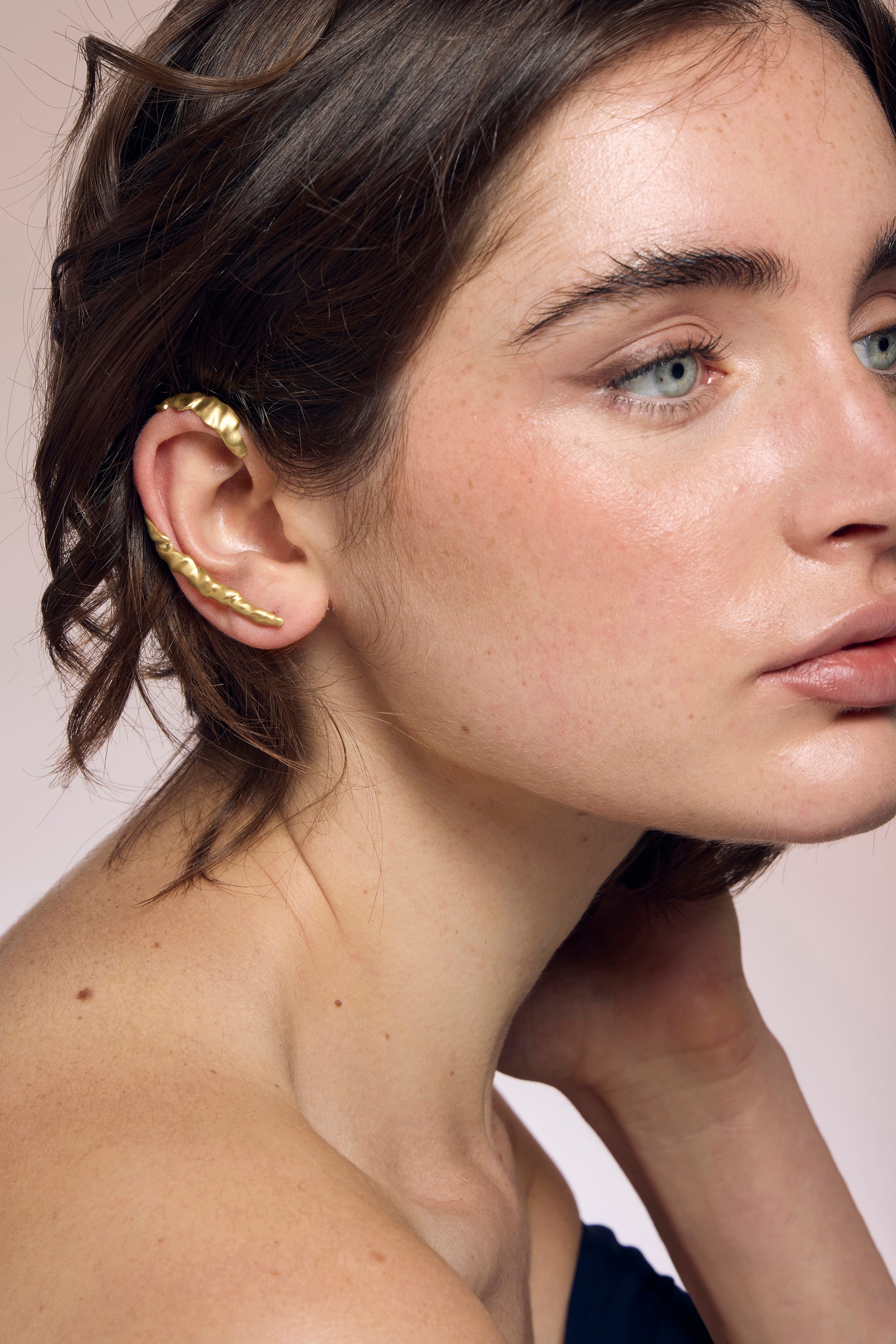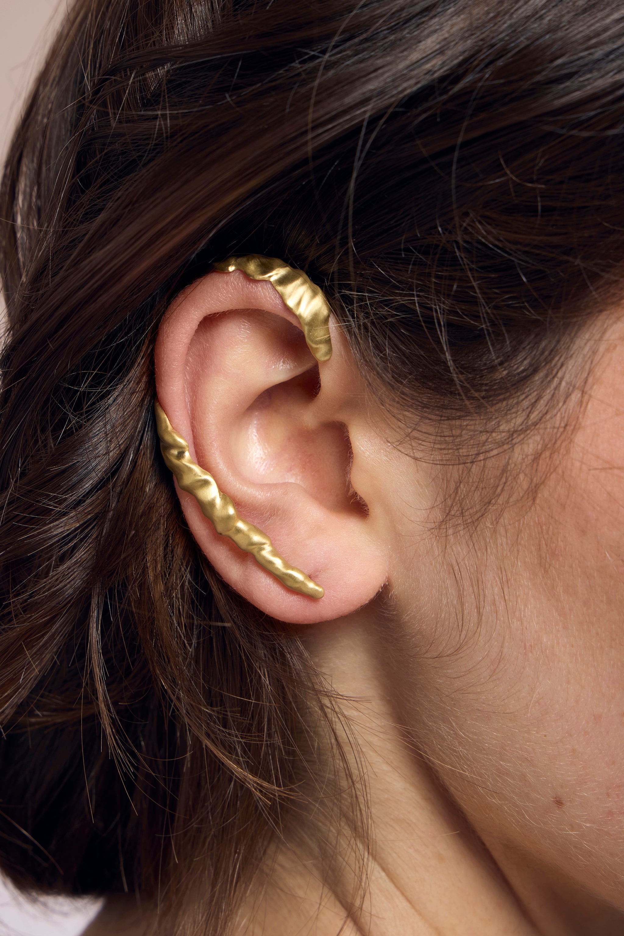 Sculpted like liquid metal, the yellow gold Armour earcuff wraps around the ear and shields its back, like a modern armour. Statement-making when worn alone, directional when paired with stacked ear bijoux on the other ear. Gilded in 24ct gold.