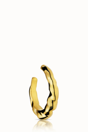 A sliver of moonlight made tangible, this fine yellow gold bijou d’oreille is inspired by Artemis’ crescent moon. Its slides easily over the edge of the ear, leaving a luminous trace like a moon-ray in motion. Best worn stacked with other ear bijoux in mixed gold tones. Gilded in fine 24ct gold.
