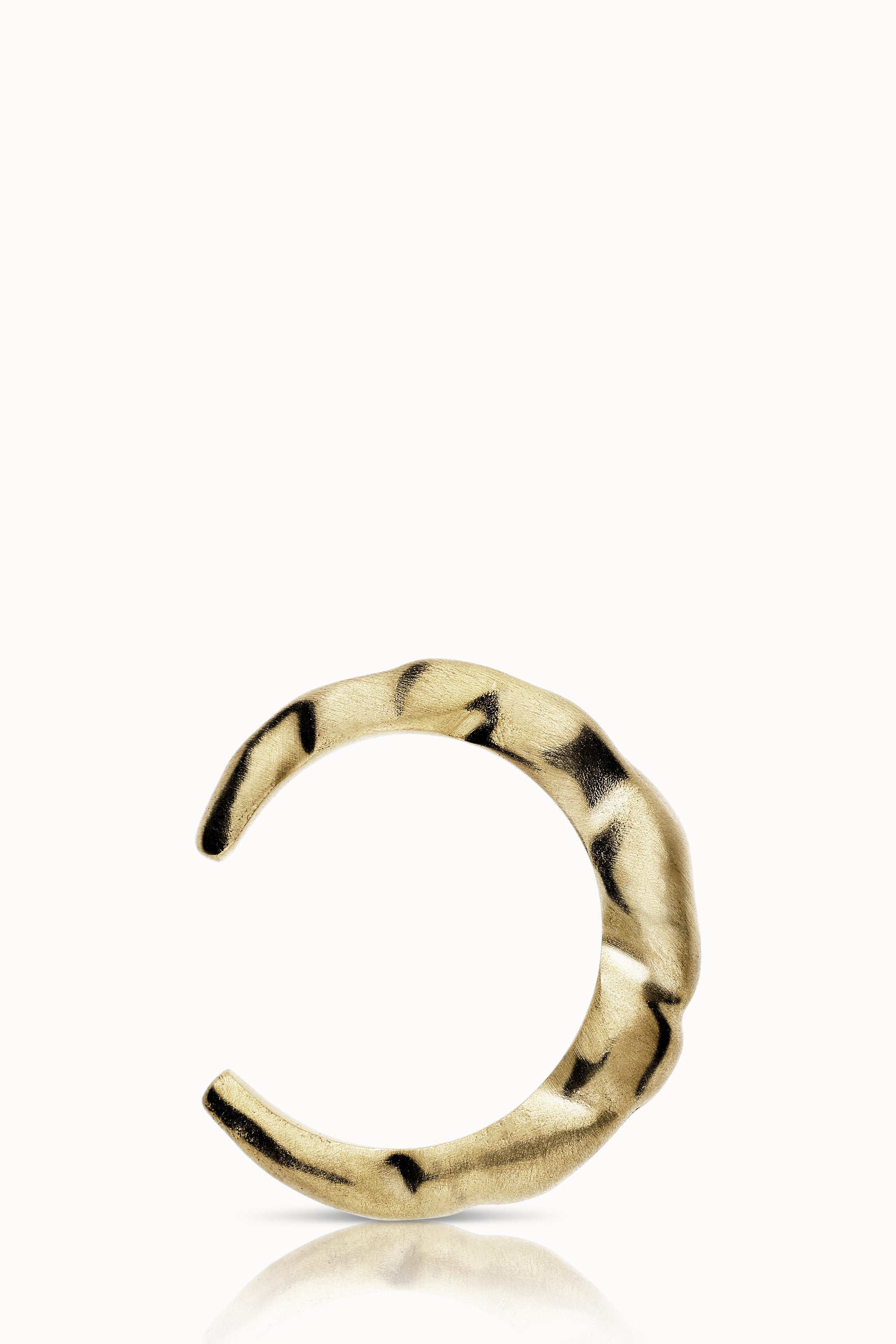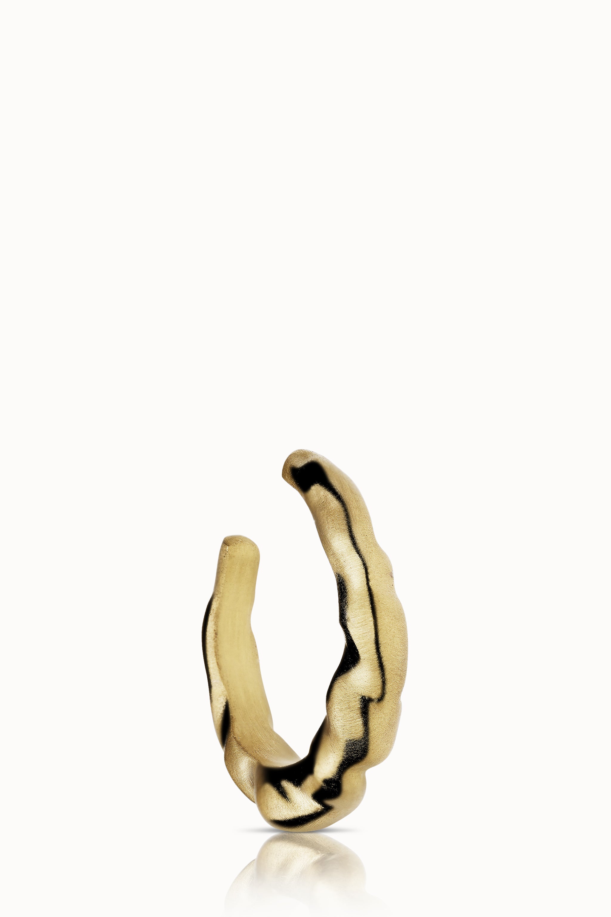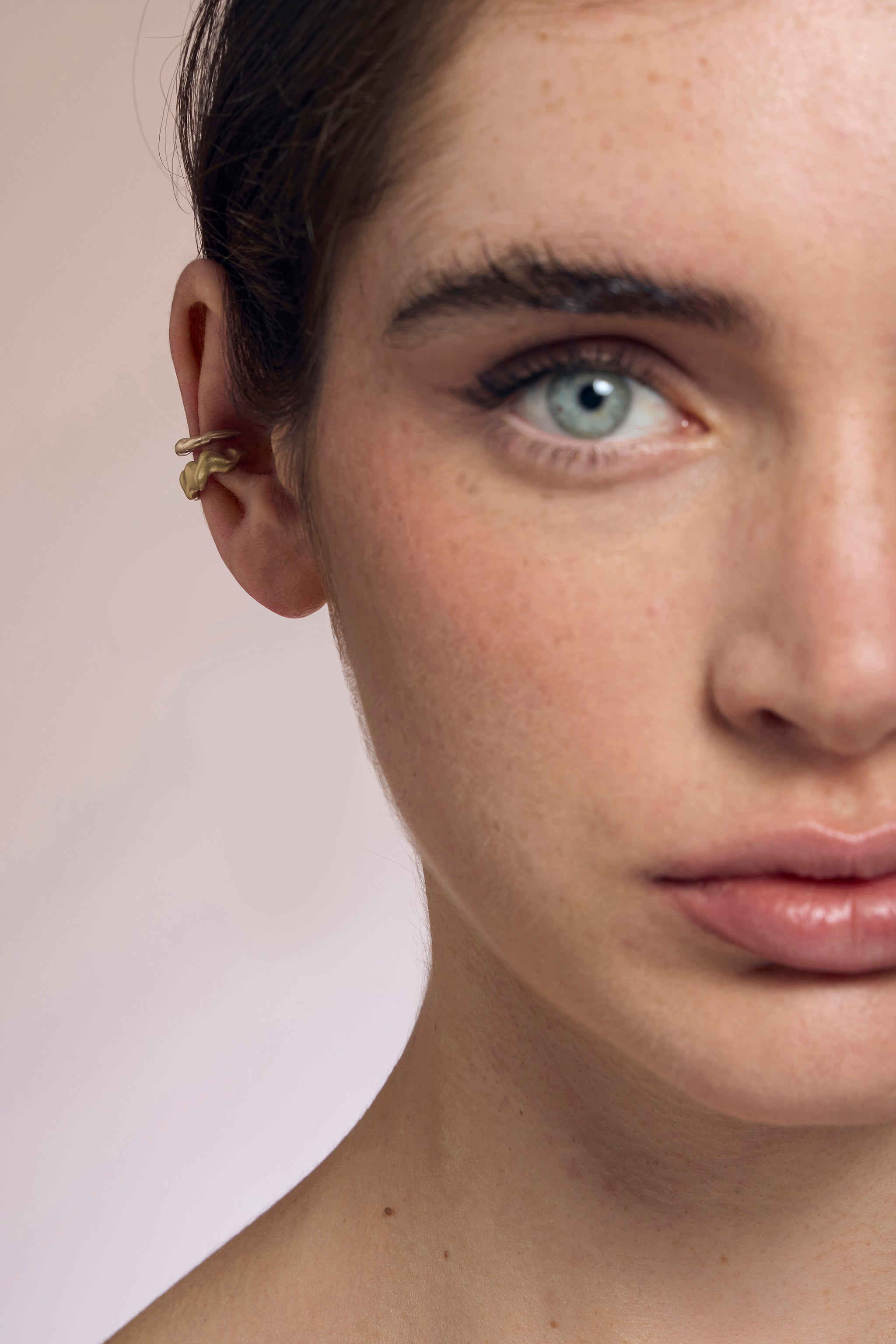 A sliver of moonlight made tangible, this fine white gold bijou d’oreille is inspired by Artemis’ crescent moon. Its slides easily over the edge of the ear, leaving a luminous trace like a moon-ray in motion. Best worn stacked with other ear bijoux in mixed gold tones. Gilded in fine 24ct gold.