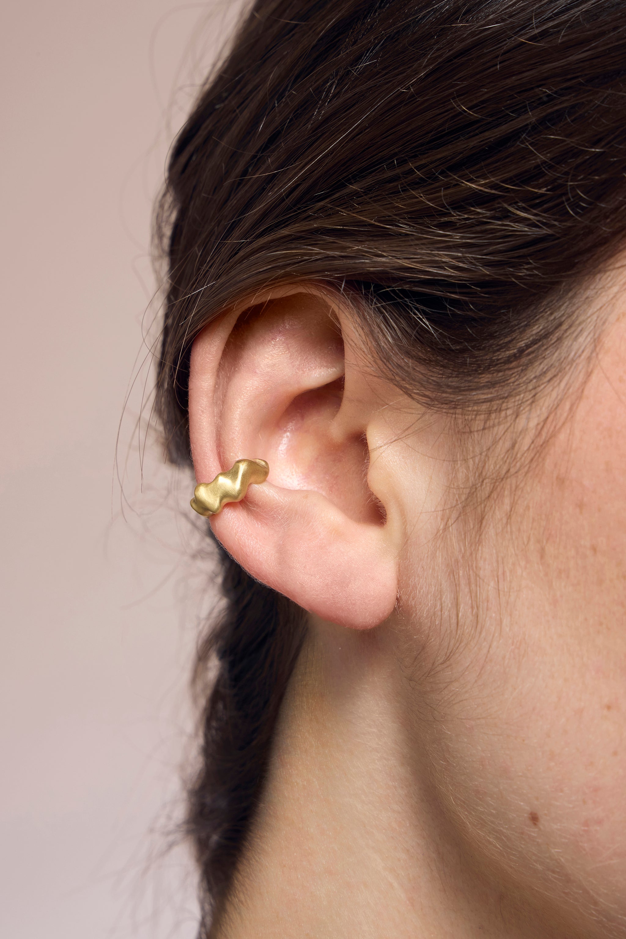 Sculpted like liquid gold, this small yellow gold ear bijou slides effortlessly along the edge of the ear, catching the eye with its subtle gleam. Wear it alone or stacked with its finer kin. Gilded in fine 24ct gold.