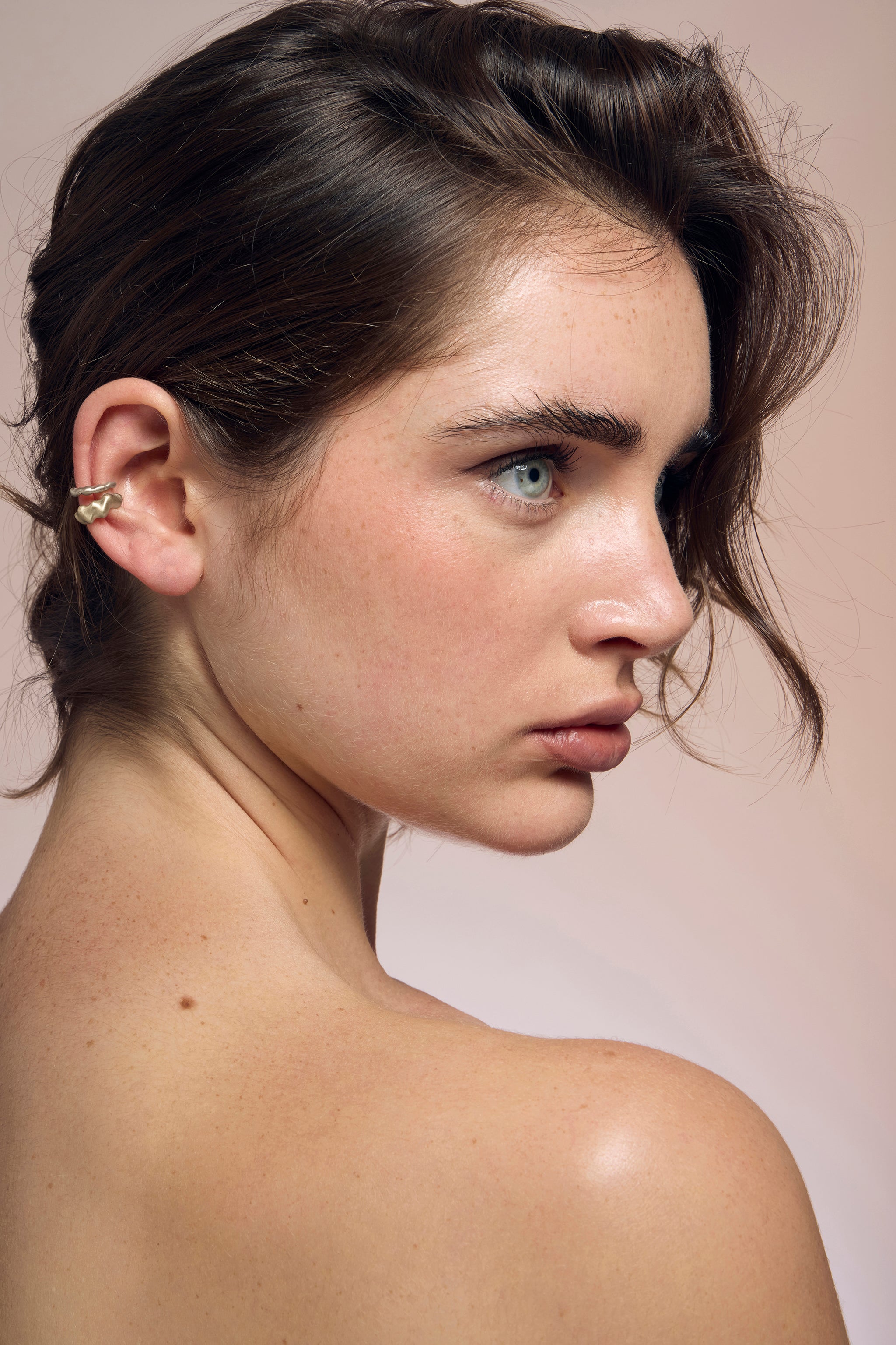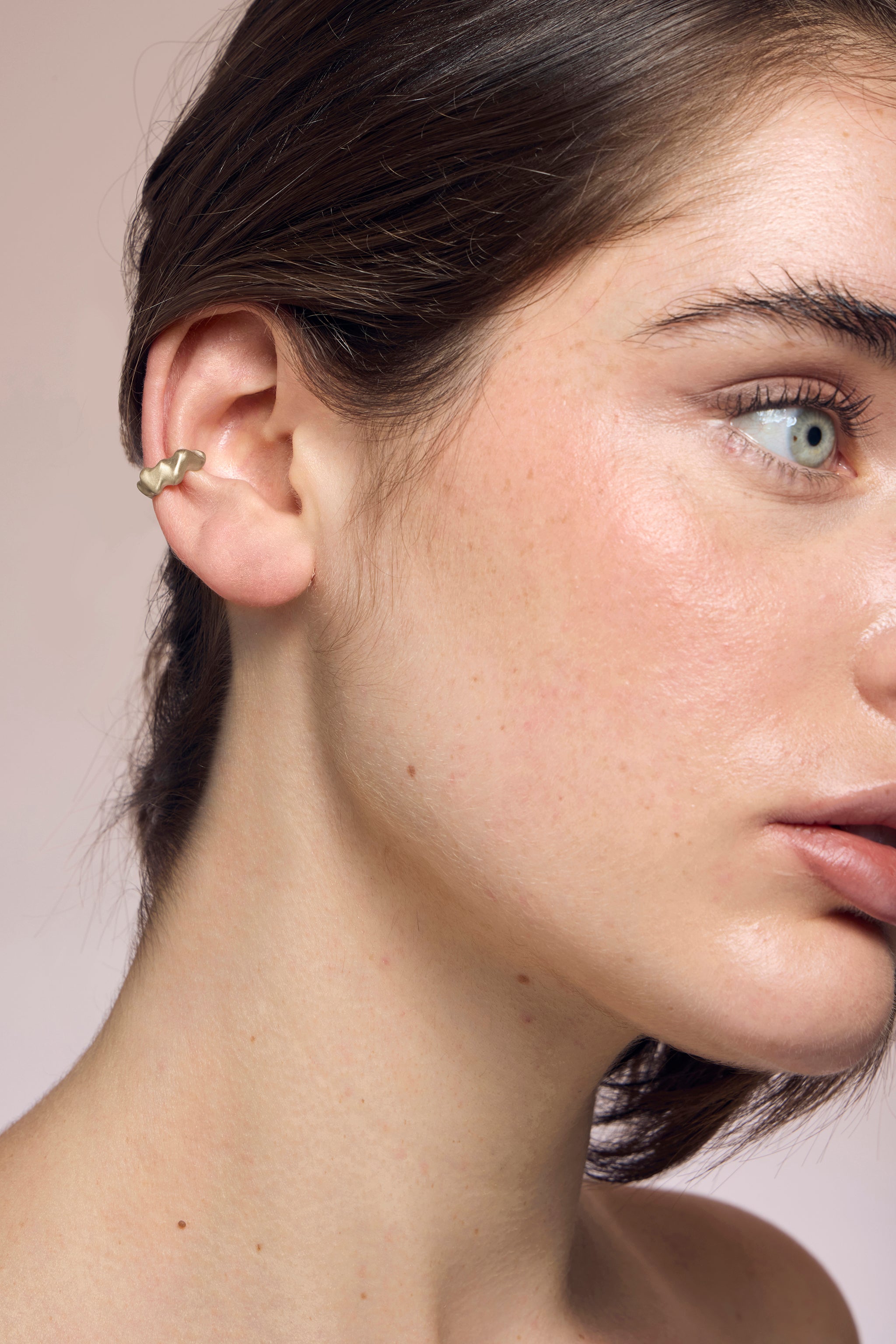 Sculpted like liquid gold, this small white gold ear bijou slides effortlessly along the edge of the ear, catching the eye with its subtle gleam. Wear it alone or stacked with its finer kin. Gilded in fine 24ct gold.